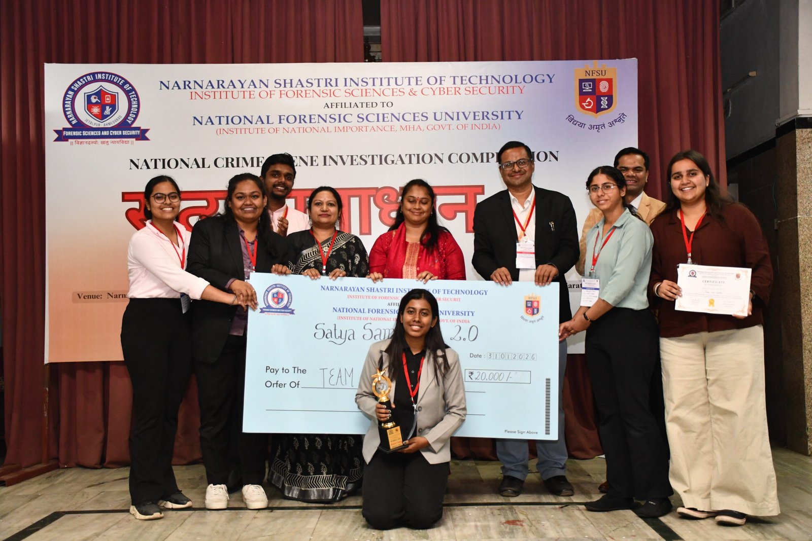 Narnarayan Shastri Institute of Technology – Institute of Forensic Sciences and Cybersecurity (NSIT–IFSCS), Jetalpur successfully organized Satya Samadhan 2.0 – National Crime Scene Investigation Competition, witnessing enthusiastic participation from 45 teams and 225 students from across the country.